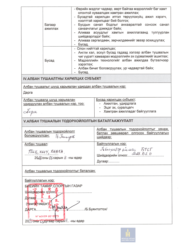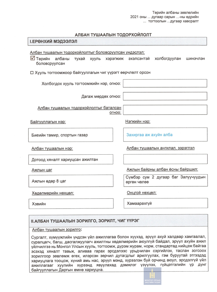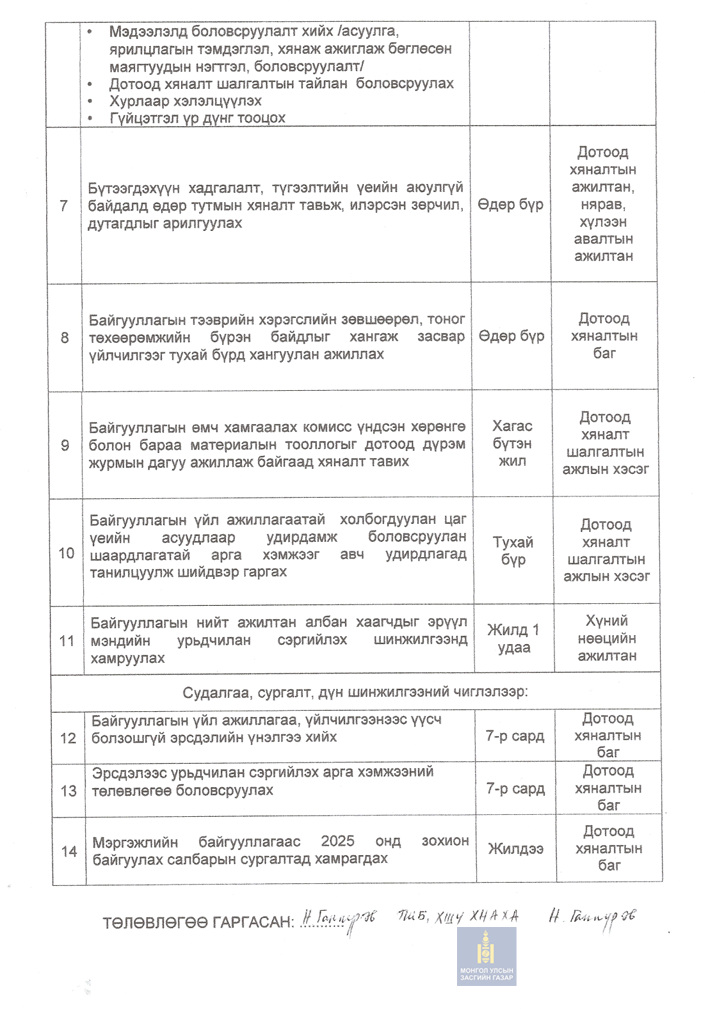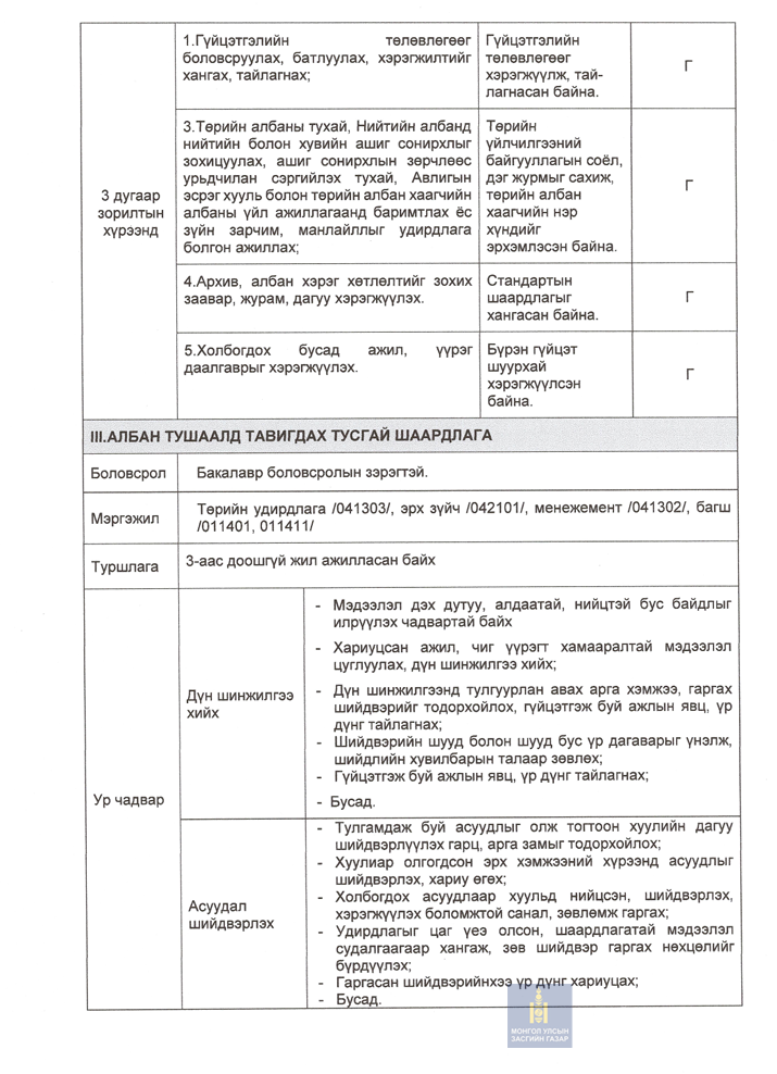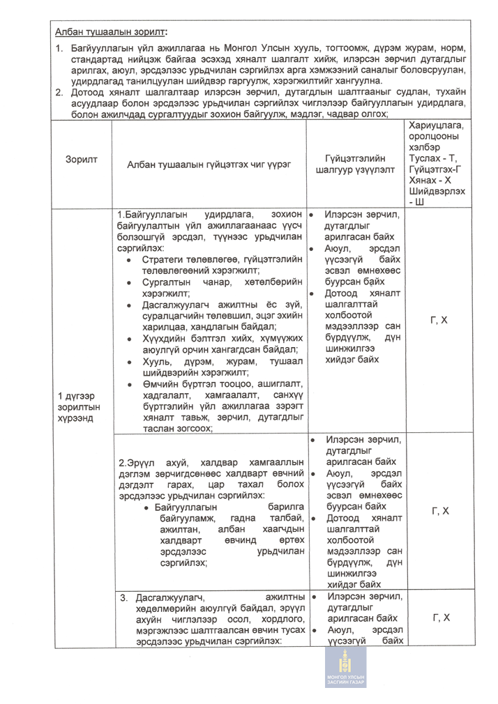 Албан тушаал: Тогтоол шийдвэрийн биелэлт, хяналт шинжилгээ үнэлгээ