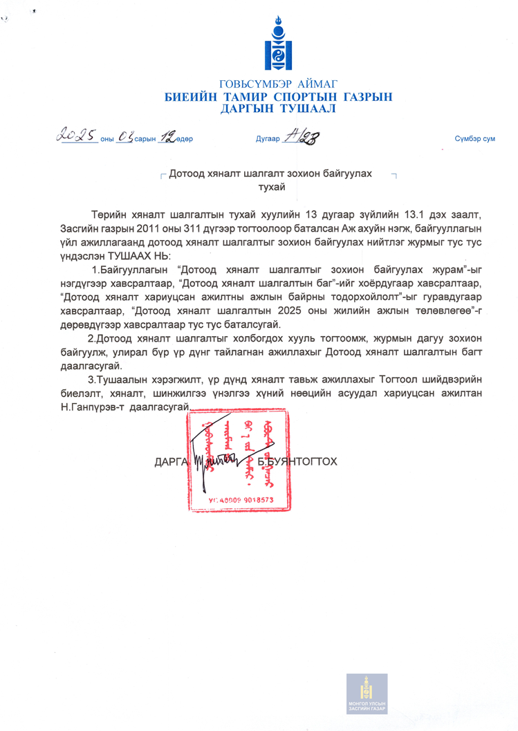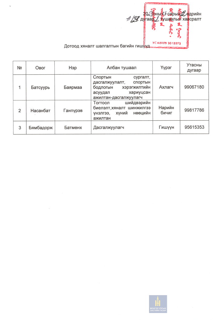 Утас: 94114420 И-мэйл: govisumber@sport.gov.mn