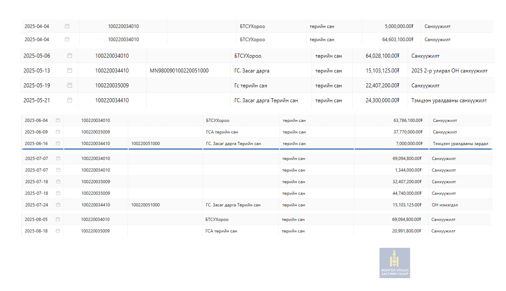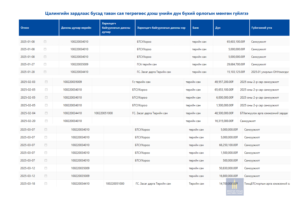 Цалингийн зардлаас бусад 5 саяаас дээш үнийн дүнгийн орлого