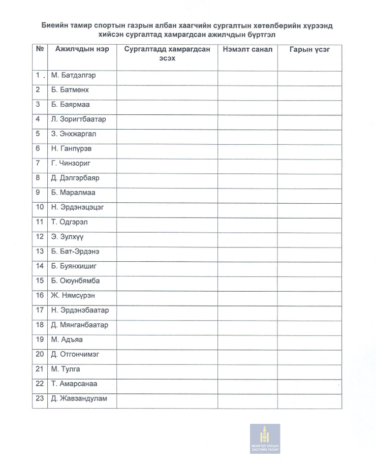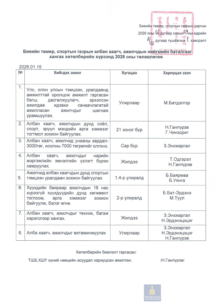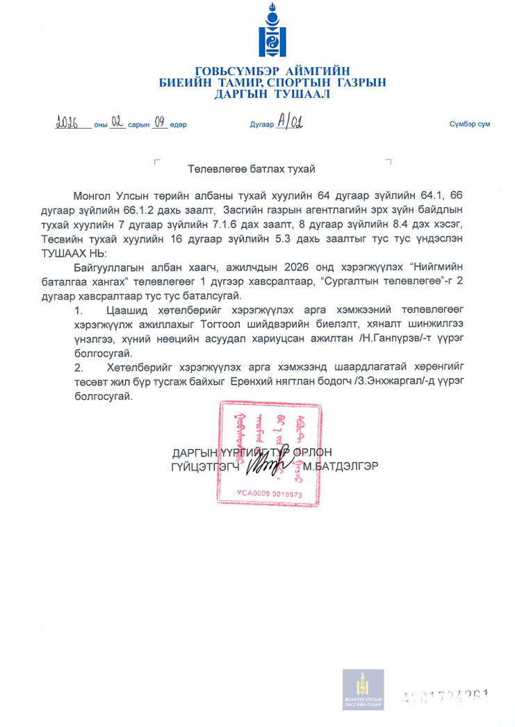 НИЙТИЙН БИЕИЙН ТАМИР, СПОРТЫГ ХӨГЖҮҮЛЭХ ТУХАЙ ЗАРЛИГ