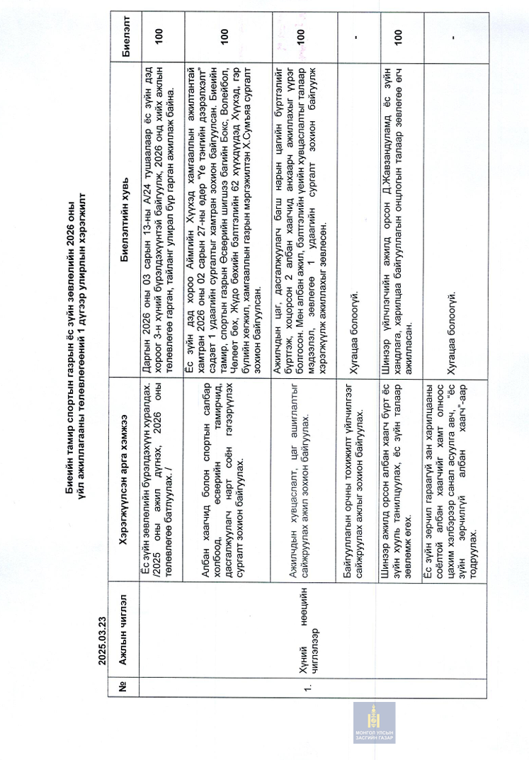 ТӨРӨӨС БИЕИЙН ТАМИР, СПОРТЫН ТАЛААР БАРИМТЛАХ БОДЛОГО