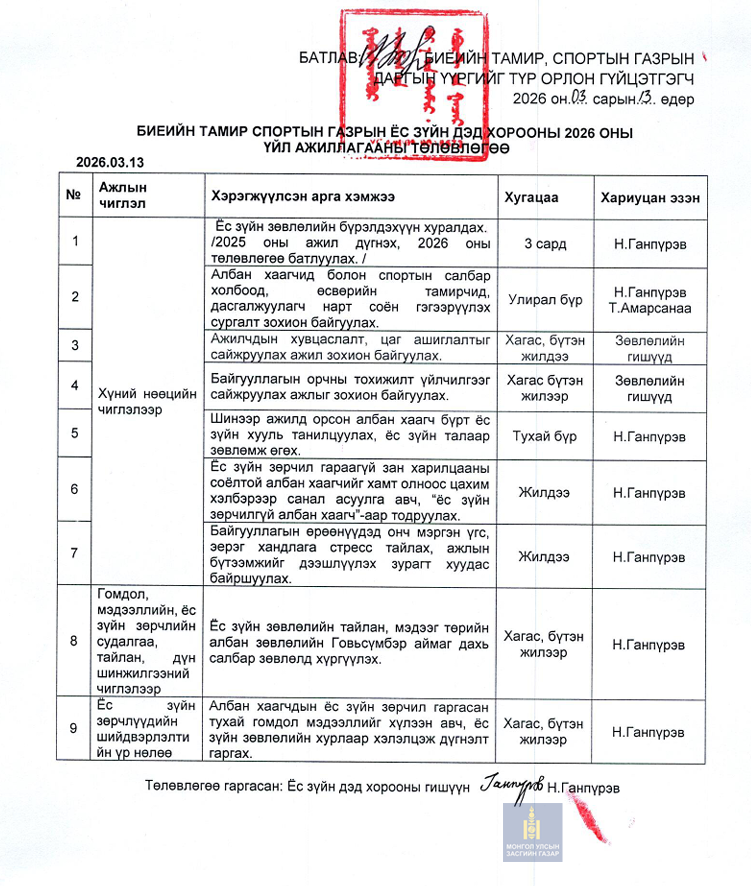 Ёс зүйн дэд хорооны 2026 оны төлөвлөгөө