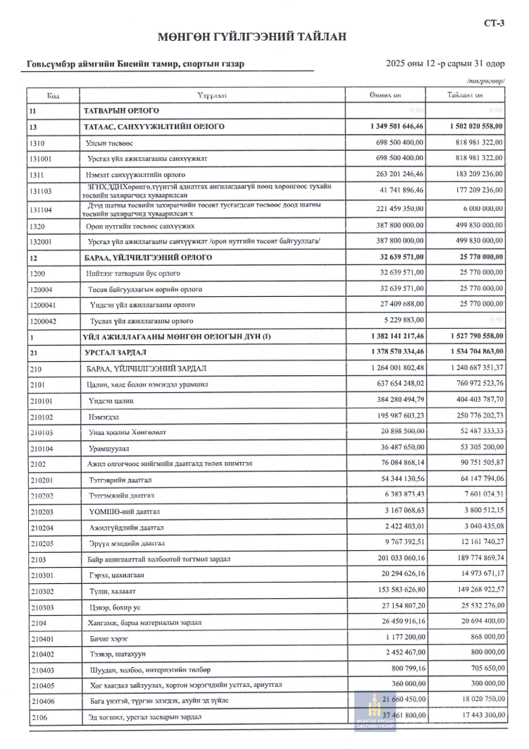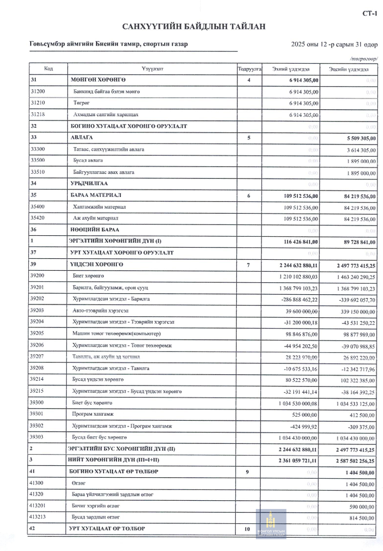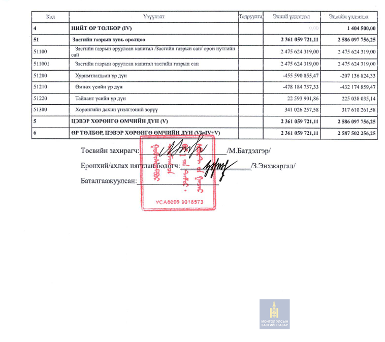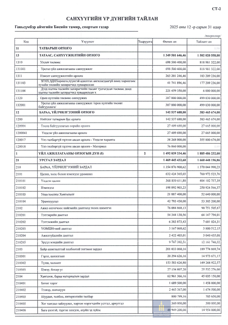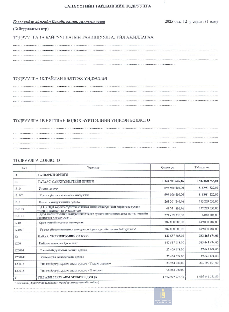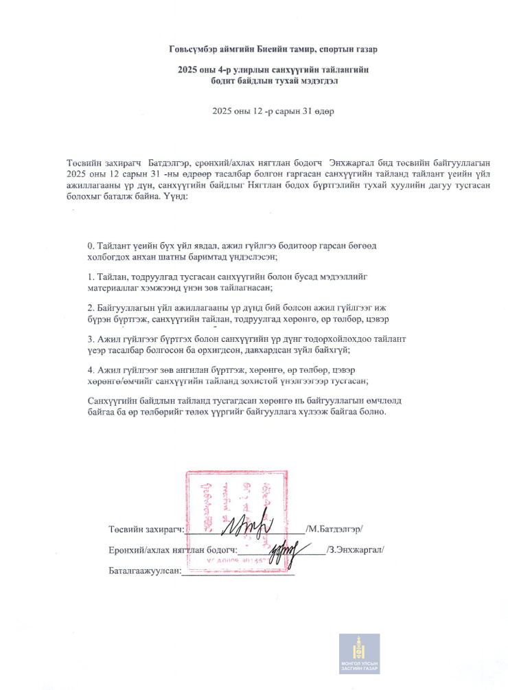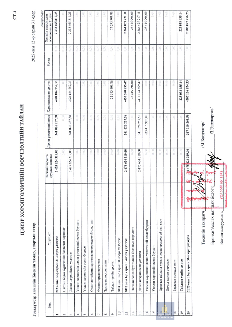 2025 оны санхүүгийн тайлан 4-р улирал