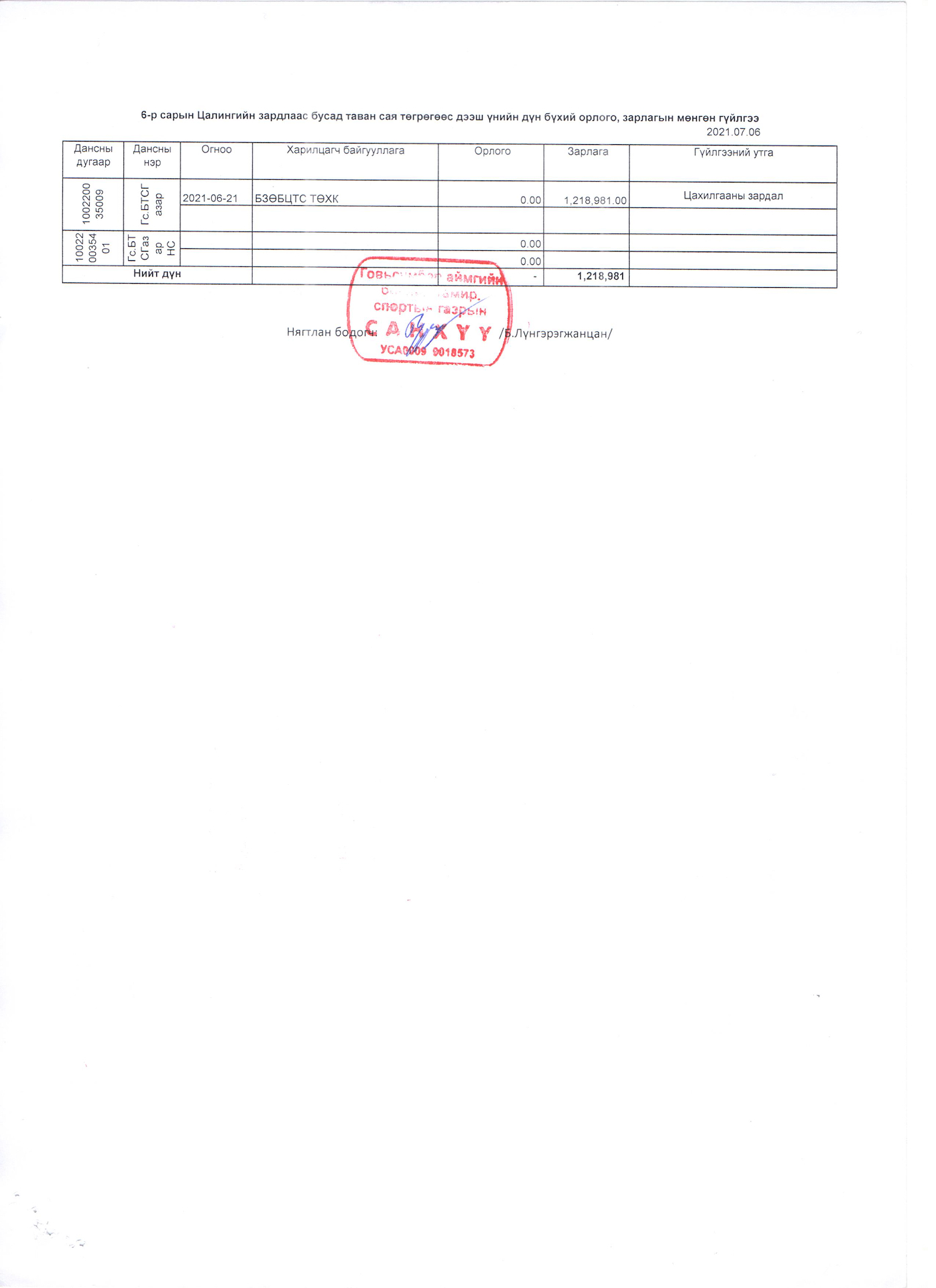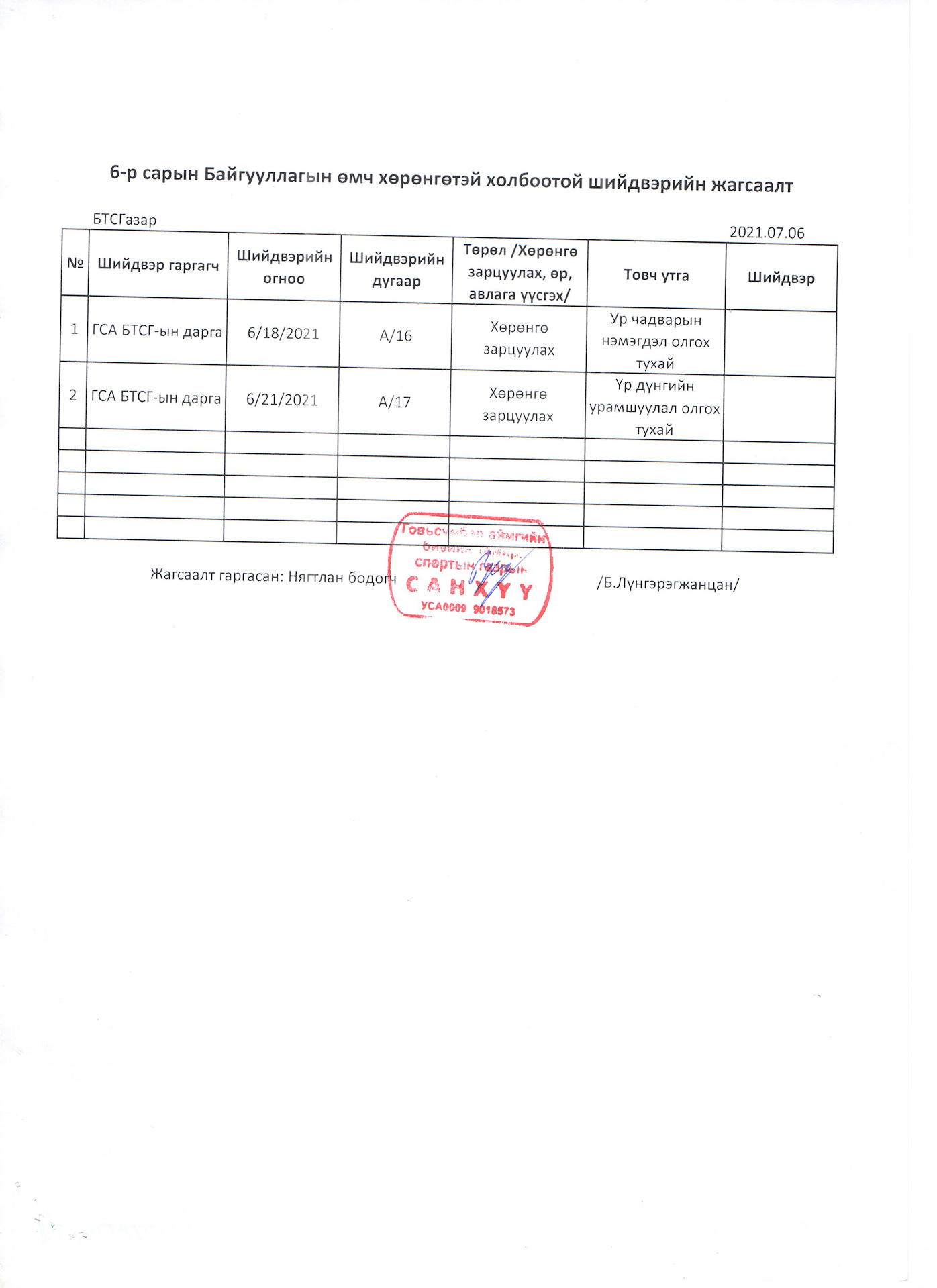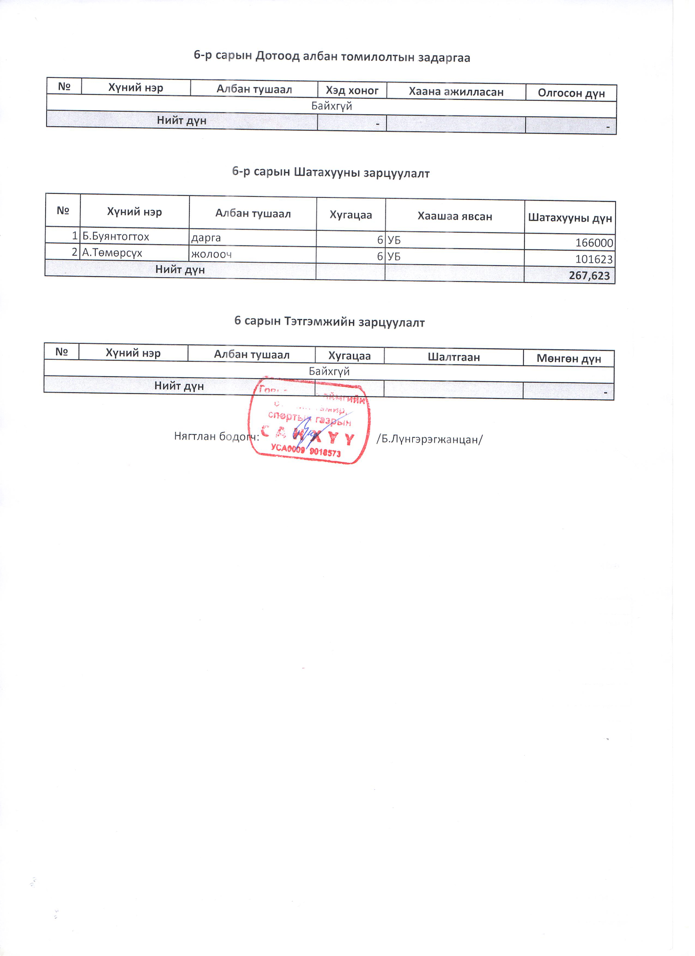 6-р сарын санхүүгийн мэдээлэл